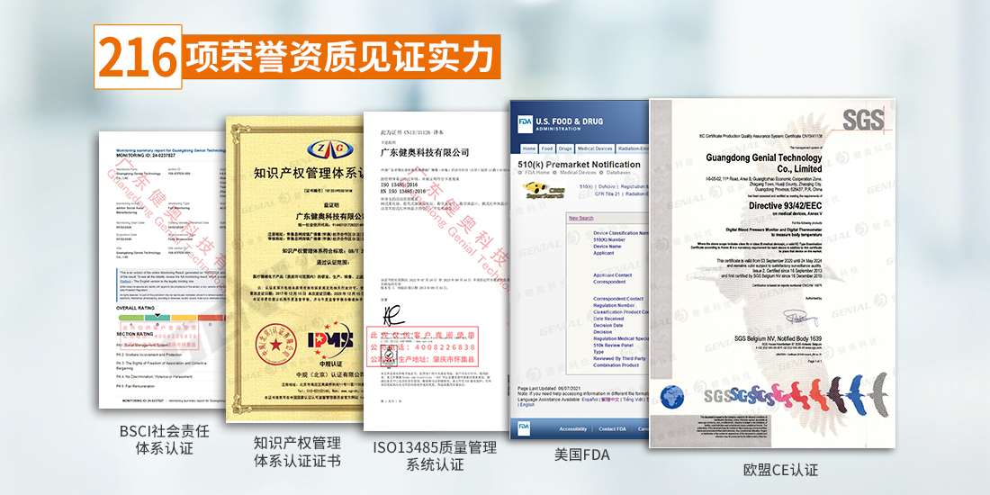 不斷研發創新,企業已經獲得206項榮譽資質,并且通過了ISO 13485 、ISO 45001、 ISO 14001、GB/T 29490知識產權管理體系認證、BSCI社會責任體系認證;